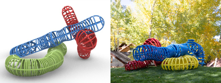 Q: Your sculpture, Common Code, which you co-produced with former Digital Fabrication Coordinator Leah Aegerter, is now part of the Ranch’s outdoor sculpture exhibition. Can you tell us about what sparked the original idea and how it came to fruition?
