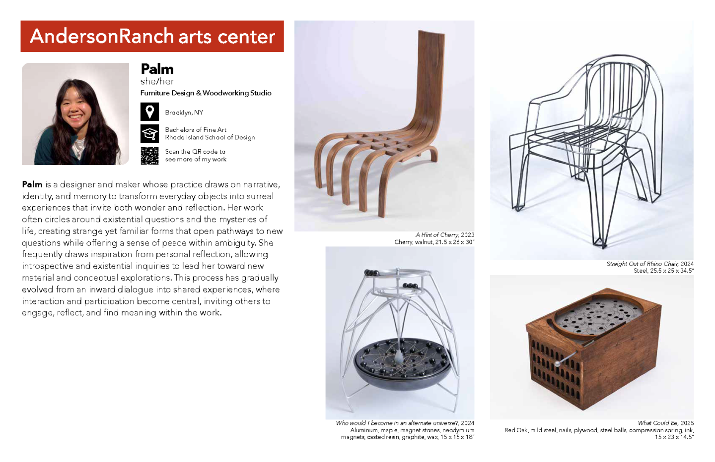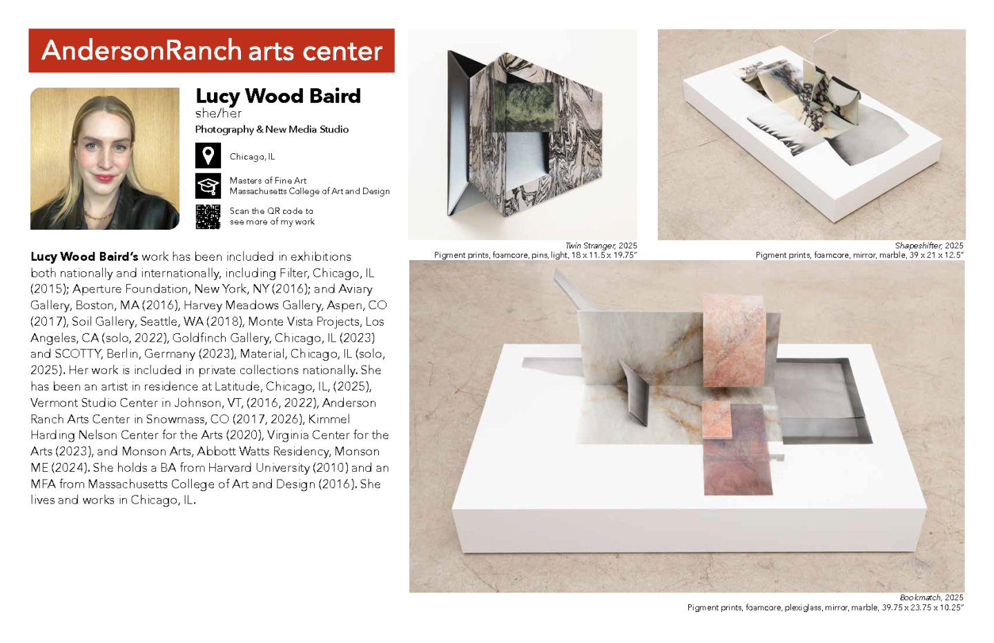 Anderson Ranch’s Artists-in-Residence Program fosters creative, intellectual and professional growth for emerging and established visual artists. Residents have access to world-class facilities and studio time, free from everyday pressures. Residents can pursue interdisciplinary projects among a community of working artists, and gain feedback from prominent Visiting Artists and Critics. The Ranch setting is specifically crafted to aid artists in the production of their work. The residency is designed to allow artists to take risks and pursue new projects and ideas. Residents will be provided housing, studio space and meals.
