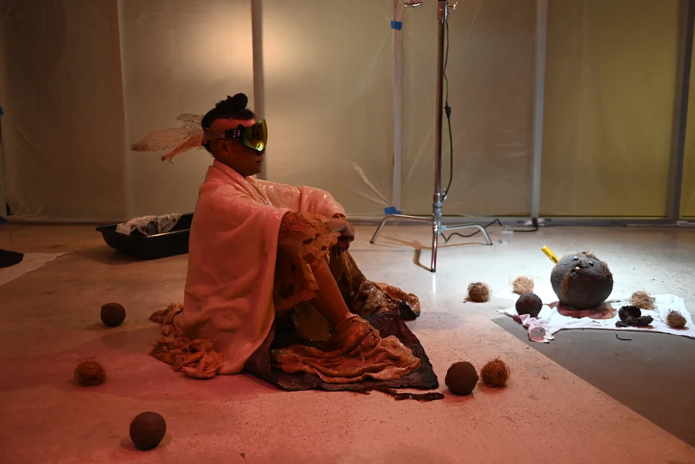 Las Nietas de Nonó is an artist duo formed by siblings Mulowayi Iyaye Nonó and Mapenzi Chibale Nonó. Their interdisciplinary practice spans performance, installation, video, and biomaterial sculpture, engaging with Caribbean collective memory and addressing issues such as dispossession, environmental injustice, and prison and medical-industrial systems.