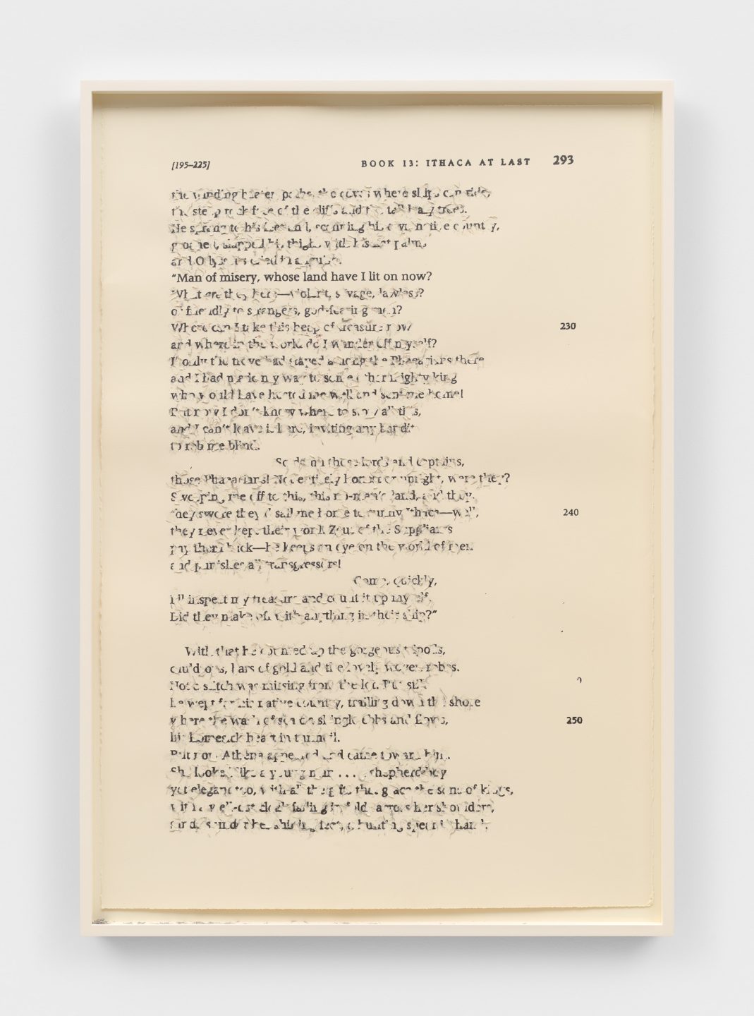 Bethany Collins’s (b.1984) multidisciplinary, conceptual practice examines the relationship between race and language, illuminating America’s past and offering insight into the development of national identities. Drawing on a wide variety of historical documents, Collins erases, obscures, excerpts, and rewrites portions of text to bring to the fore issues revolving around race, power, and histories of violence.