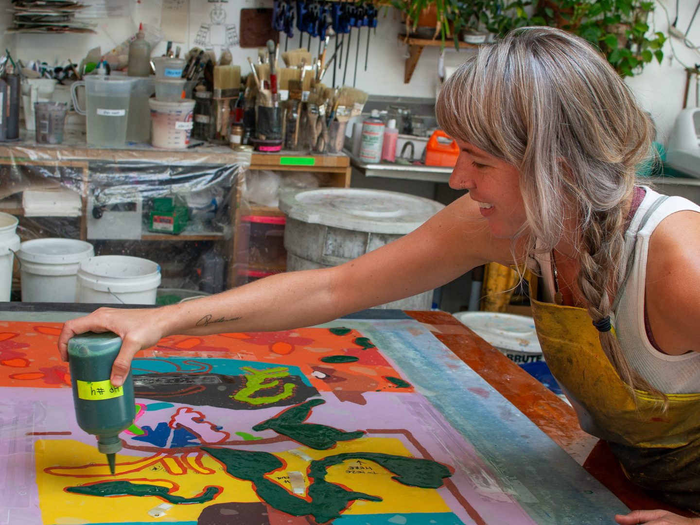 Rachel Gladfelter is the Director of Pace Paper, a collaborative papermaking studio in Brooklyn, NY, operated by Pace Prints. She works with artists creating unique and editioned works within the medium. Her most recent collaborations have included works with Kennedy Yanko, Shahzia Sikander, Hilary Pecis, Derek Fordjour, Keltie Ferris and Nina Chanel Abney. She was previously the Director of Pace Prints gallery, and began her tenure as studio director and collaborator at the nonprofit paper studio Dieu Donne.