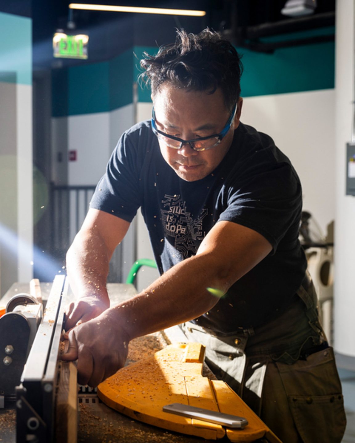 Hayami Arakawa attended the school at California College of the Arts and Crafts, where he was able to focus his creative energies. Starting in the Industrial Design department and defecting to the Wood Furniture design program, Hayami laid the foundations for a lifelong career in design and making. He has been a woodshop manager, machinist technical instructor, and furniture professor. Now Hayami is the director of the MIT Hobby Shop in Cambridge, MA. Additionally, he is a practitioner of the furniture arts, an instructional video producer, and continues to design and build his line of Artifactoids.