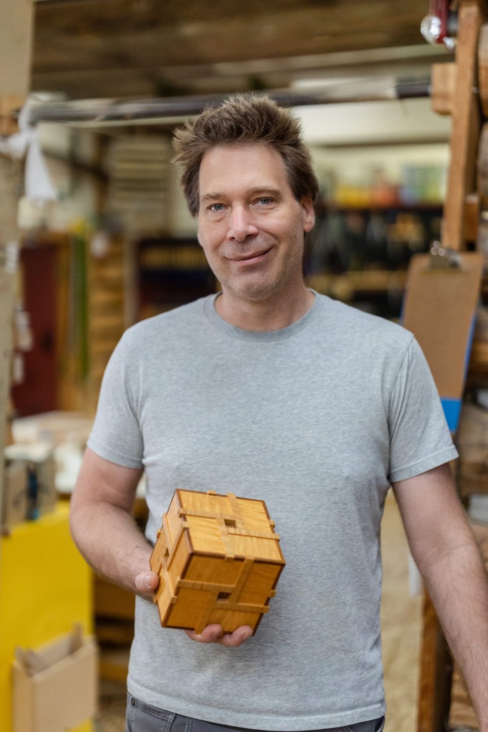 Kagen Sound has been a full-time puzzle box maker for 25 years. After studying math in college he gravitated towards the form as an expression of logic and riddles. His puzzle boxes have won numerous awards in the worldwide puzzle collecting community, and are considered an artform that intersects with mechanical puzzles and woodworking.
